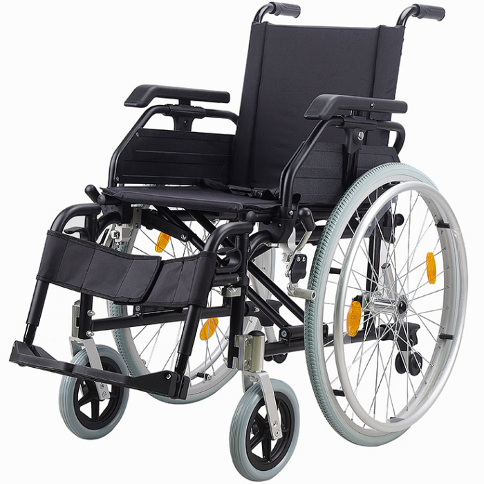 The Premium Self-Propelled Wheelchair is crafted to an exceptionally high standard, independently tested and approved by SGS to meet AS/NZS 3695.1:2011 standards. Made from premium aluminium and powder-coated in a sleek matte black finish, this lightweight and durable chair is virtually maintenance-free.