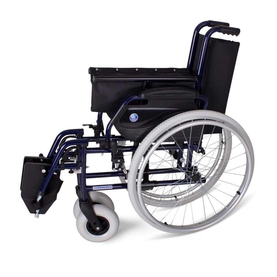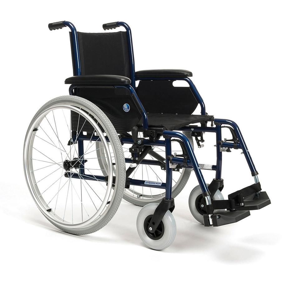 The Vermeiren Jazz manual wheelchair is a durable, self-propelled wheelchair designed for comfort and ease of use. Featuring ergonomic handgrips, removable armrests, and adjustable leg rests, it’s easily foldable for convenient travel and storage.